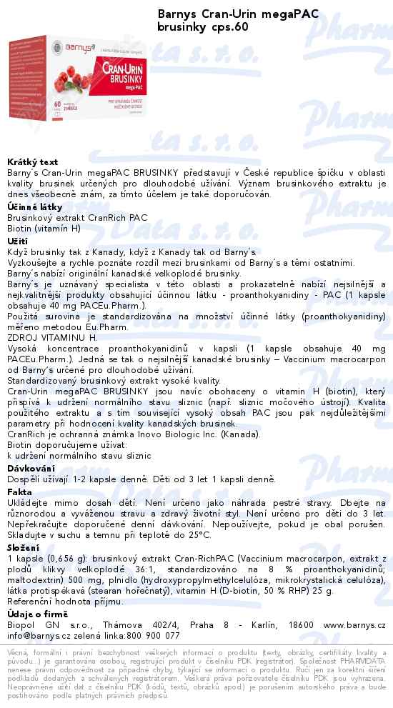 Barnys Cran-Urin megaPAC brusinky cps.60