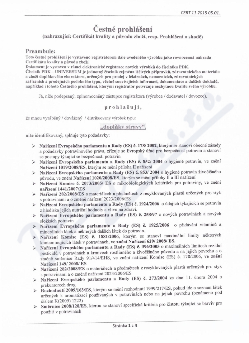 4 strany čestného prohlášení: strana 1, strana 2, strana 3, strana 4,