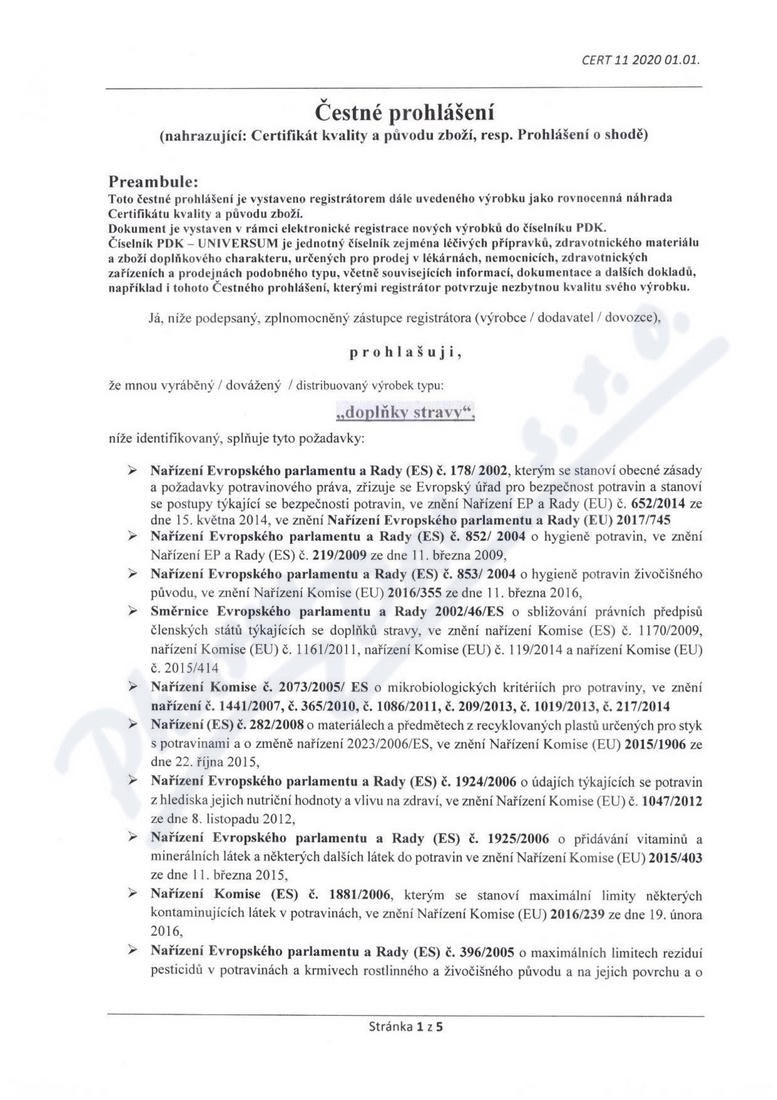 5 strany čestného prohlášení: strana 1, strana 2, strana 3, strana 4, strana 5,