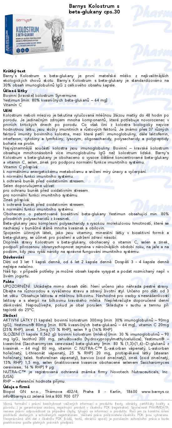 Barnys Kolostrum s beta-glukany cps.30