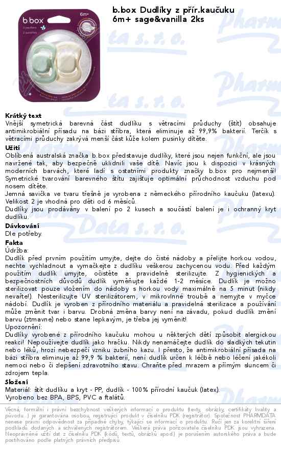 b.box Dudlíky z přír.kaučuku 6m+ sage&vanilla 2ks