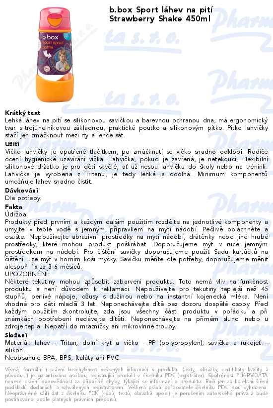 b.box Sport láhev na pití Strawberry Shake 450ml