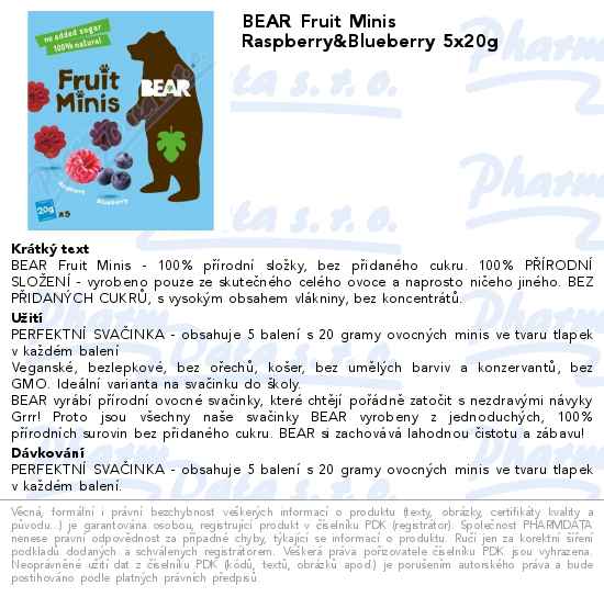 BEAR Fruit Minis Raspberry&Blueberry 5x20g