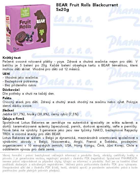 BEAR Fruit Rolls Blackcurrant 5x20g