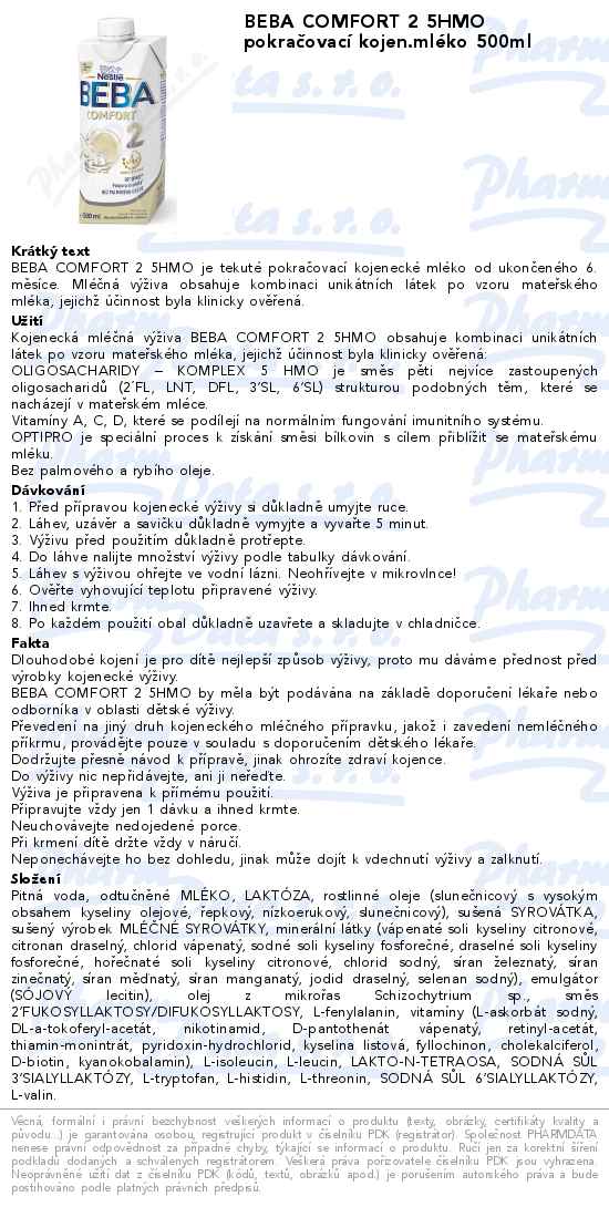 BEBA COMFORT 2 5HMO pokračovací kojen.mléko 500ml