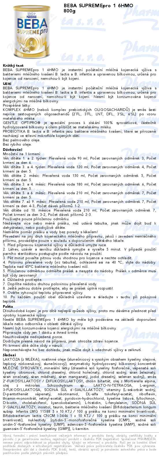BEBA SUPREMEpro 1 6HMO 800g