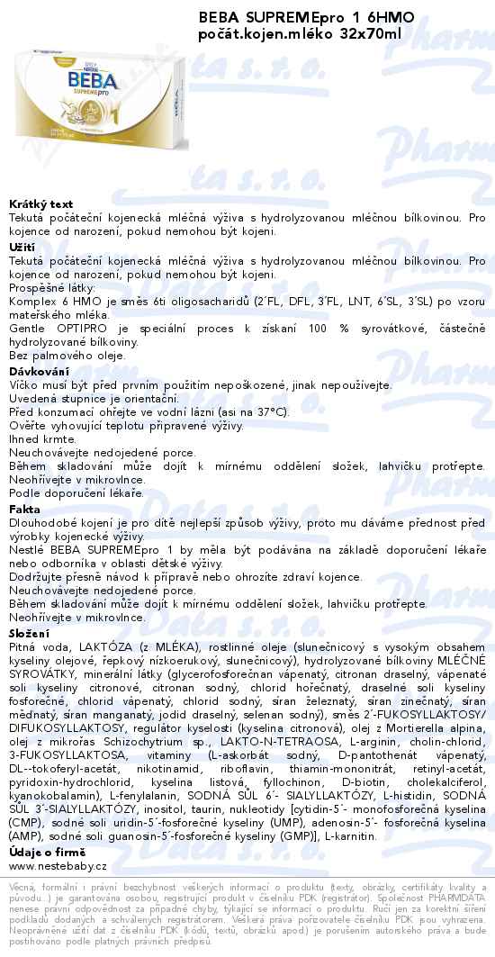 BEBA SUPREMEpro 1 6HMO počát.kojen.mléko 32x70ml