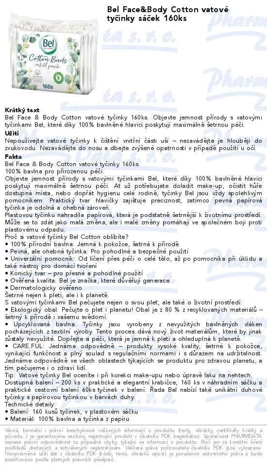 Bel Face&Body Cotton vatové tyčinky sáček 160ks
