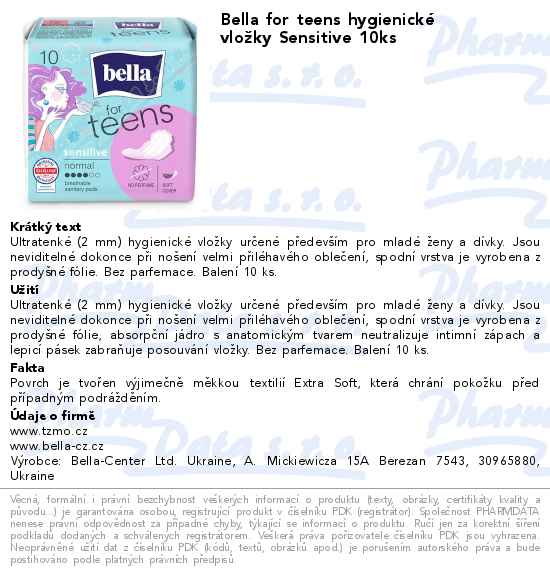 Bella for teens hygienické vložky Sensitive 10ks