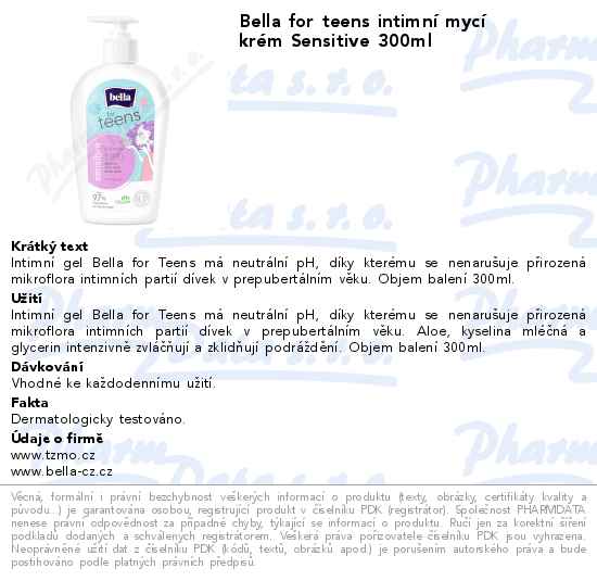 Bella for teens intimní mycí krém Sensitive 300ml