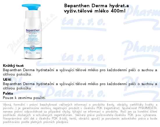 Bepanthen Derma hydrat.a vyživ.tělové mléko 400ml