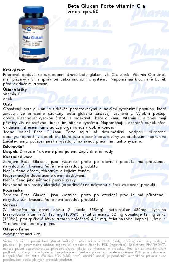 Beta Glukan Forte vitamín C a zinek cps.60