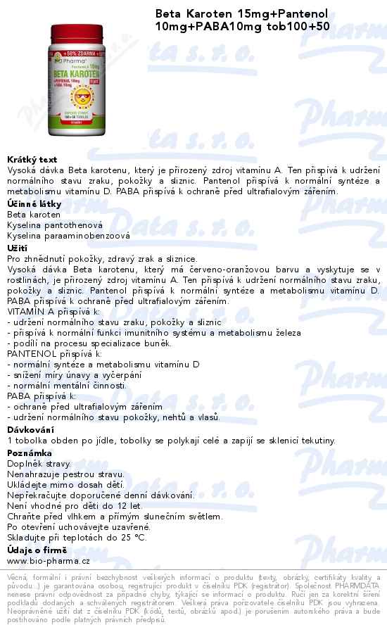 Beta Karoten 15mg+Pantenol 10mg+PABA10mg tob100+50