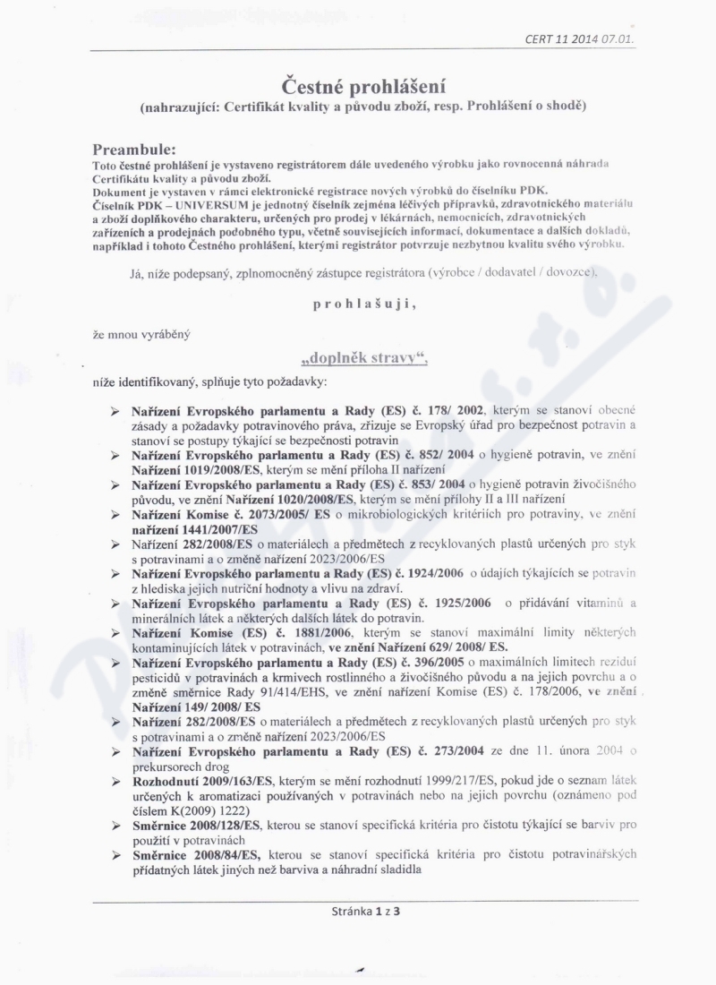 3 strany čestného prohlášení: strana 1, strana 2, strana 3,