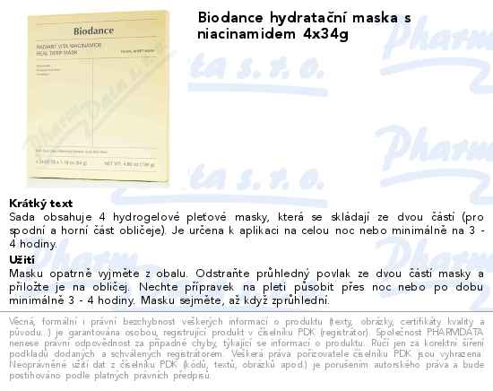 Biodance hydratační maska s niacinamidem 4x34g