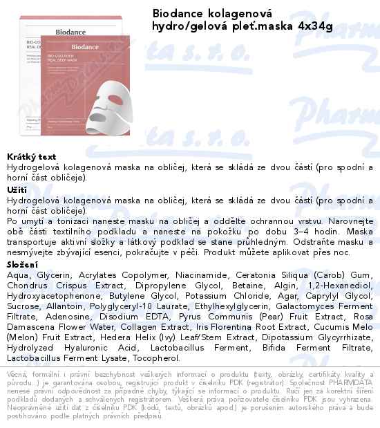Biodance kolagenová hydro/gelová pleť.maska 4x34g