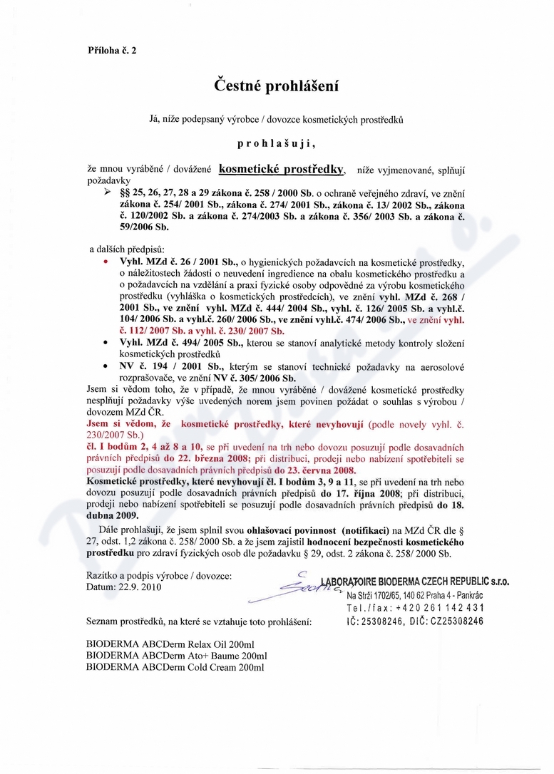 čestné prohlášení