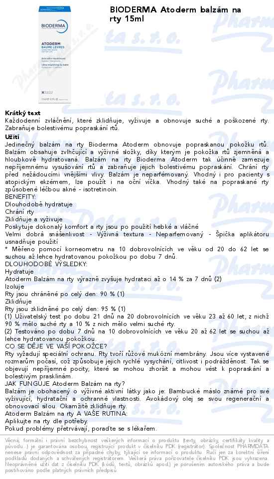 BIODERMA Atoderm balzám na rty 15ml