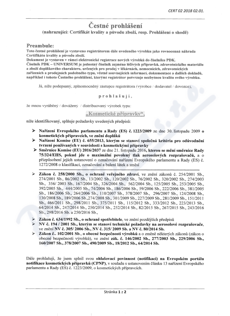2 strany čestného prohlášení: strana 1, strana 2,