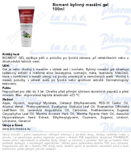Bioment bylinný masážní gel 100ml