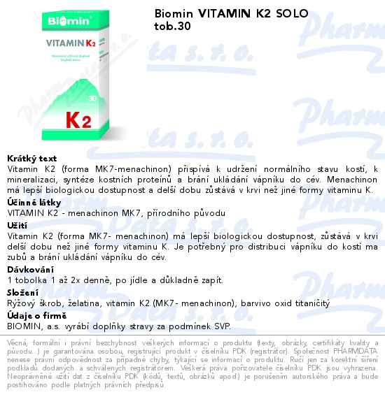 Biomin VITAMIN K2 SOLO tob.30