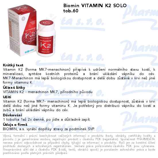 Biomin VITAMIN K2 SOLO tob.60