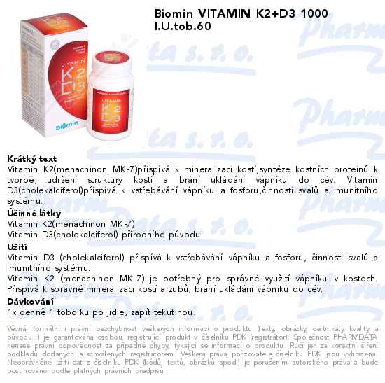 Biomin VITAMIN K2+D3 1000 I.U.tob.60