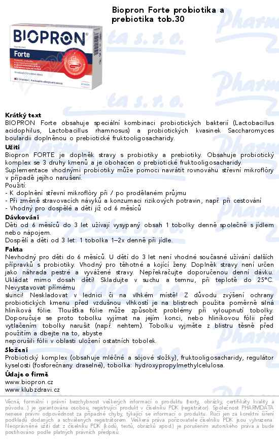 Biopron Forte probiotika a prebiotika tob.30