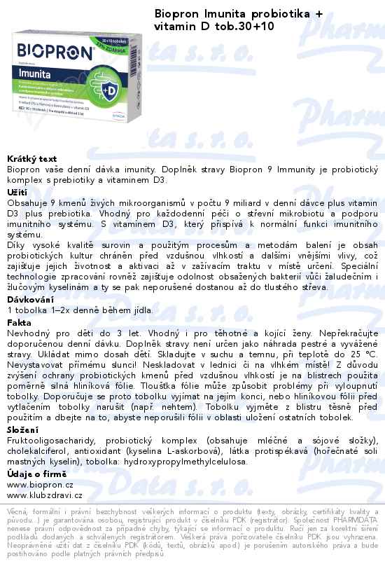 Biopron Imunita probiotika + vitamin D tob.30+10