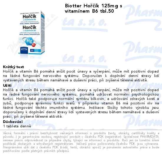 Biotter Hořčík 125mg s vitamínem B6 tbl.50