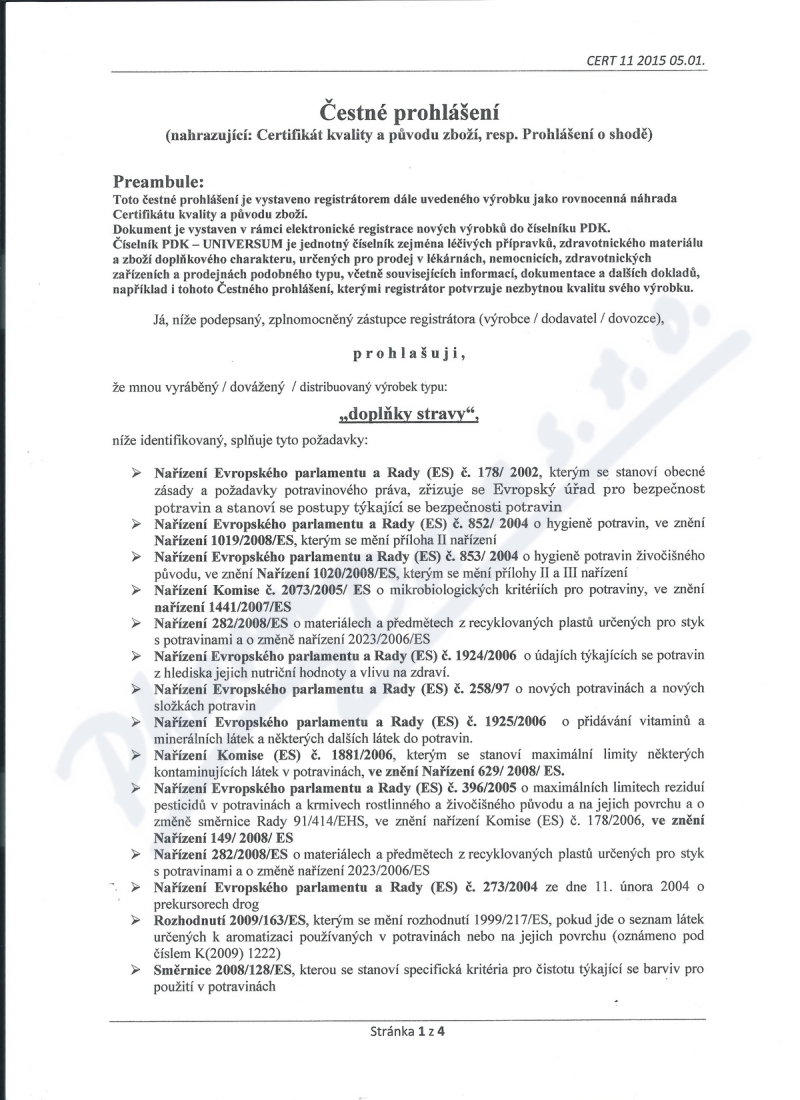 4 strany čestného prohlášení: strana 1, strana 2, strana 3, strana 4,