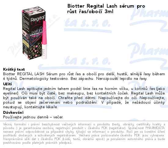 Biotter Regital Lash sérum pro růst řas/obočí 3ml