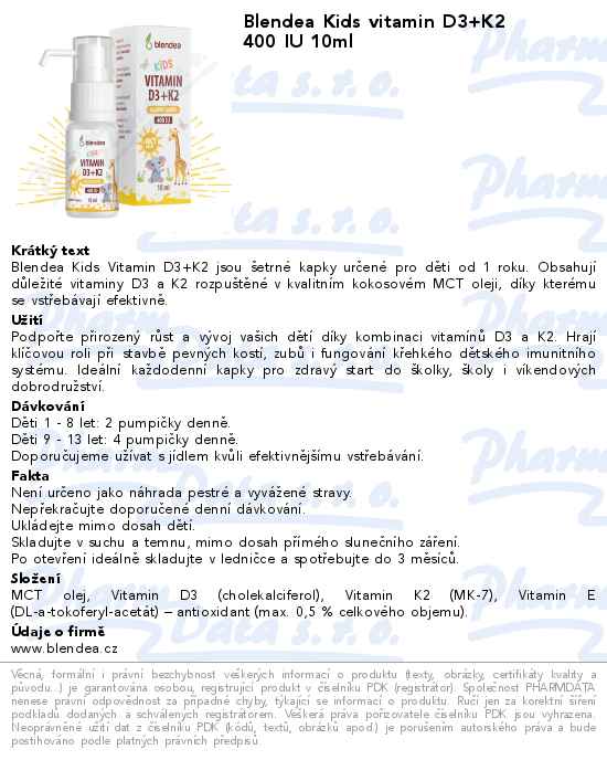 Blendea Kids vitamin D3+K2 400 IU 10ml