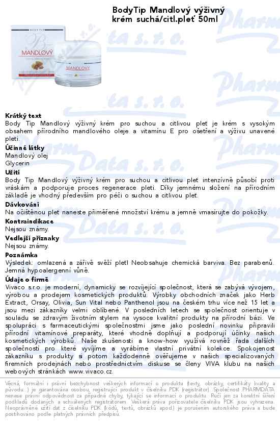BodyTip Mandlový výživný krém suchá/citl.pleť 50ml
