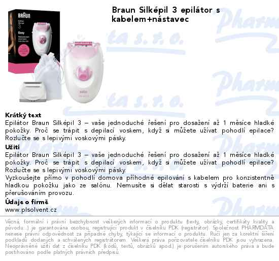 Braun Silképil 3 epilátor s kabelem+nástavec