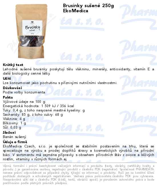 Brusinky sušené 250g EkoMedica