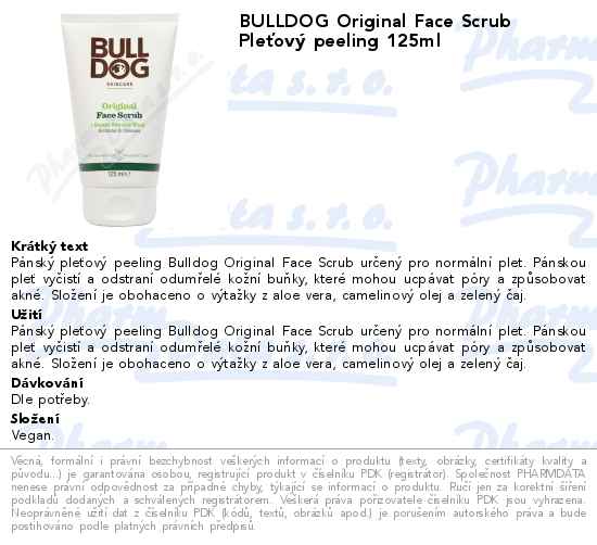 BULLDOG Original Face Scrub Pleťový peeling 125ml