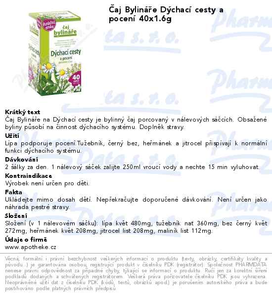 Čaj Bylináře Dýchací cesty a pocení 40x1.6g