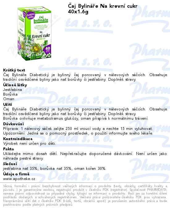 Čaj Bylináře Na krevní cukr 40x1.6g