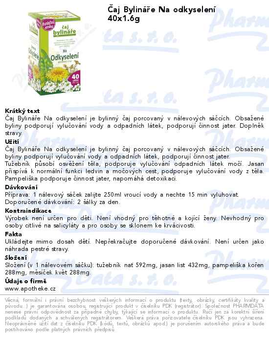 Čaj Bylináře Na odkyselení 40x1.6g