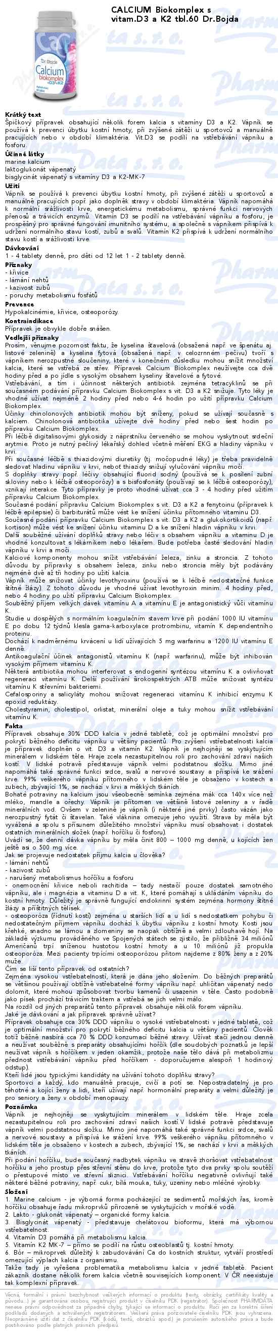 CALCIUM Biokomplex s vitam.D3 a K2 tbl.60 Dr.Bojda