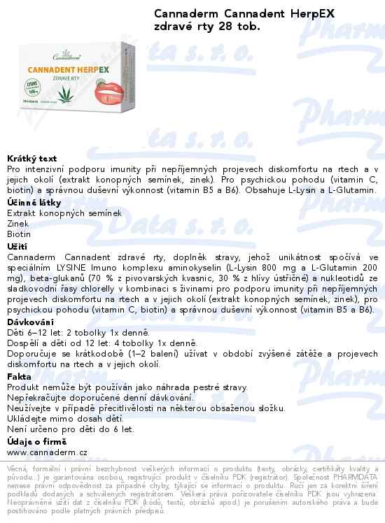 Cannaderm Cannadent HerpEX zdravé rty 28 tob.