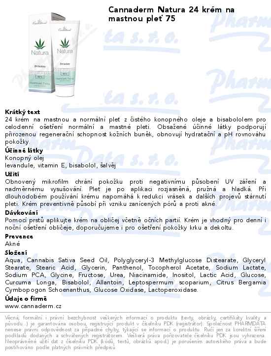 Cannaderm Natura 24 krém na mastnou pleť 75