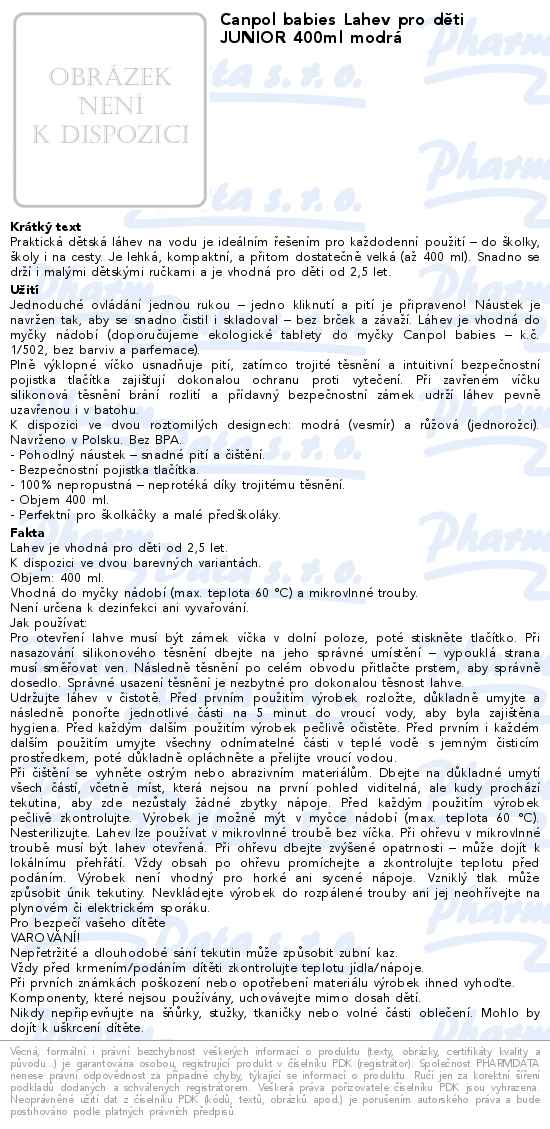 Canpol babies Lahev pro děti JUNIOR 400ml modrá