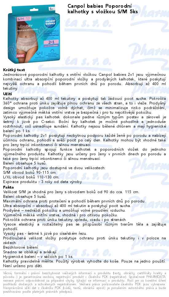 Canpol babies Poporodní kalhotky s vložkou S/M 5ks