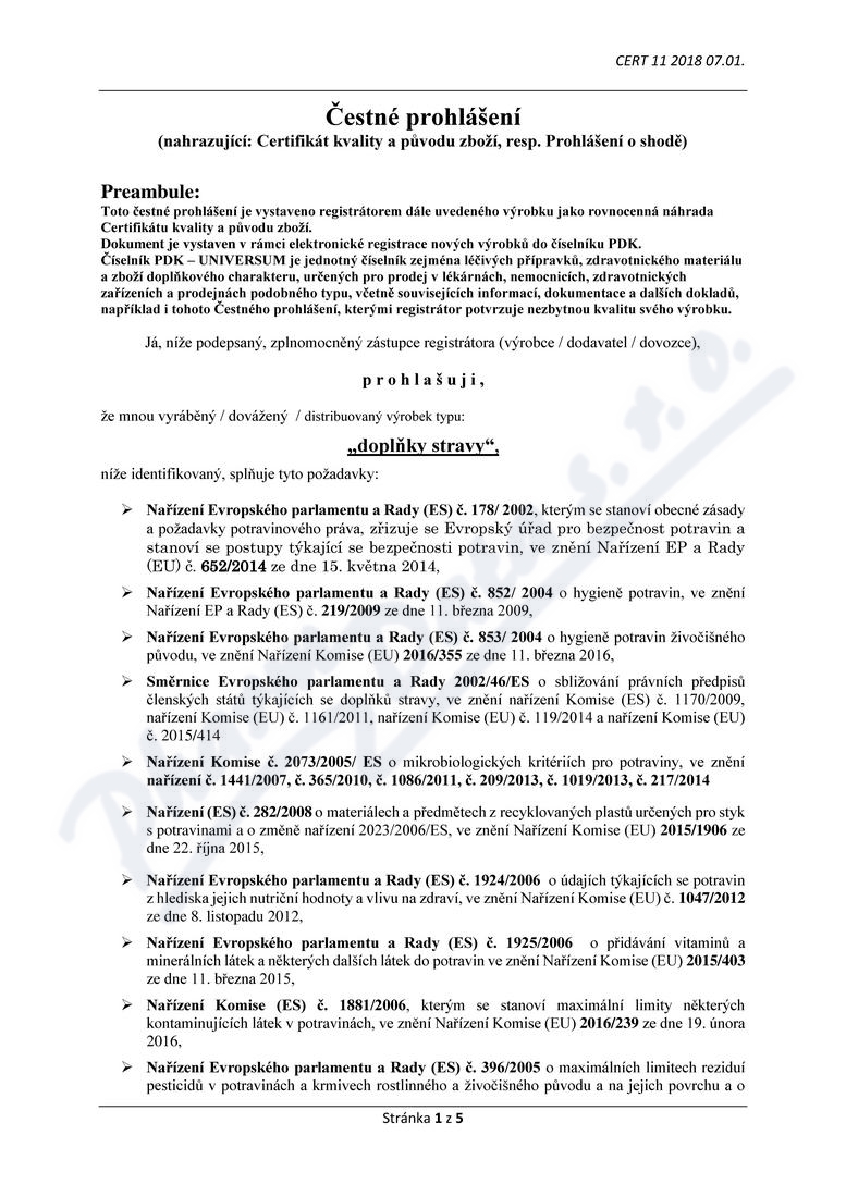 5 strany čestného prohlášení: strana 1, strana 2, strana 3, strana 4, strana 5,