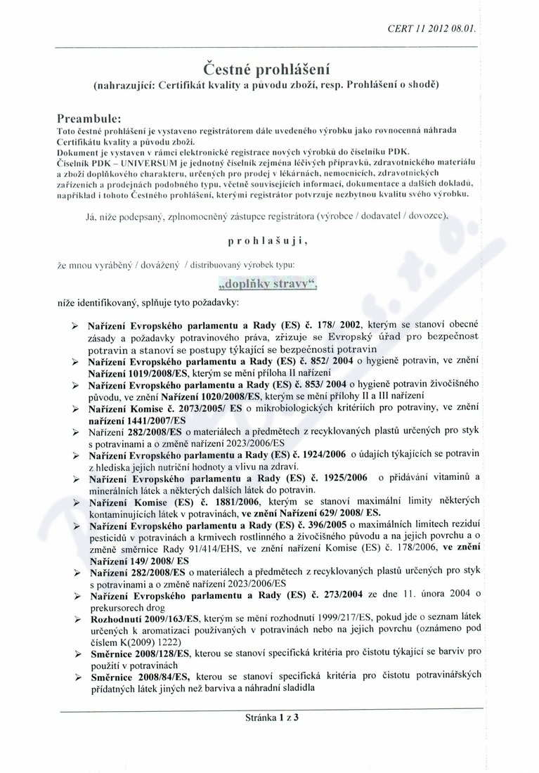3 strany čestného prohlášení: strana 1, strana 2, strana 3,