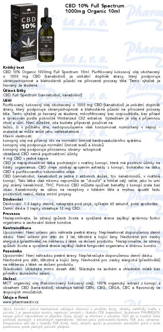 CBD 10% Full Spectrum 1000mg Organic 10ml