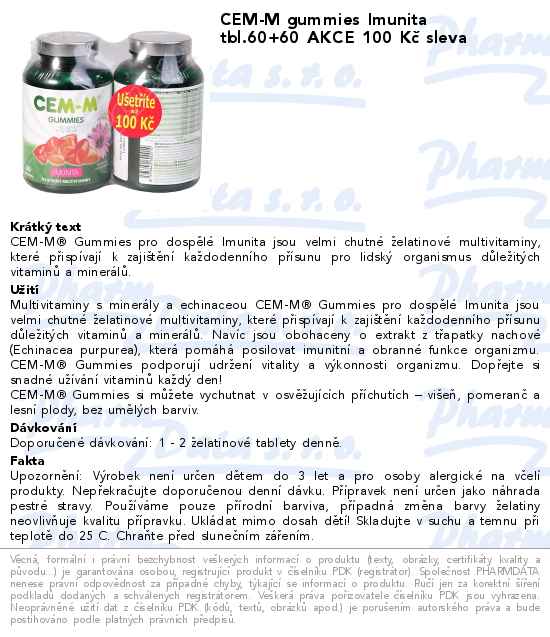 CEM-M gummies Imunita tbl.60+60 AKCE 100 Kč sleva