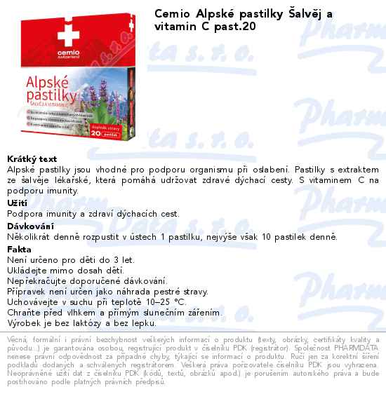Cemio Alpské pastilky Šalvěj a vitamin C past.20